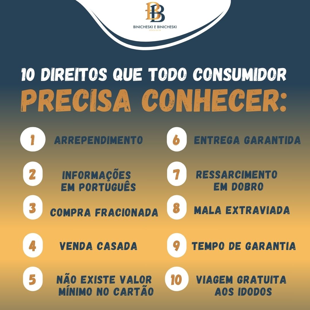 1- Direito a arrependimento nas compras pela internet, telefone e redes sociais: O consumidor pode se arrepender e desistir da compra até sete dias após receber o produto, independentemente da existência ou não de defeito.